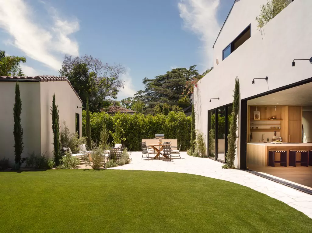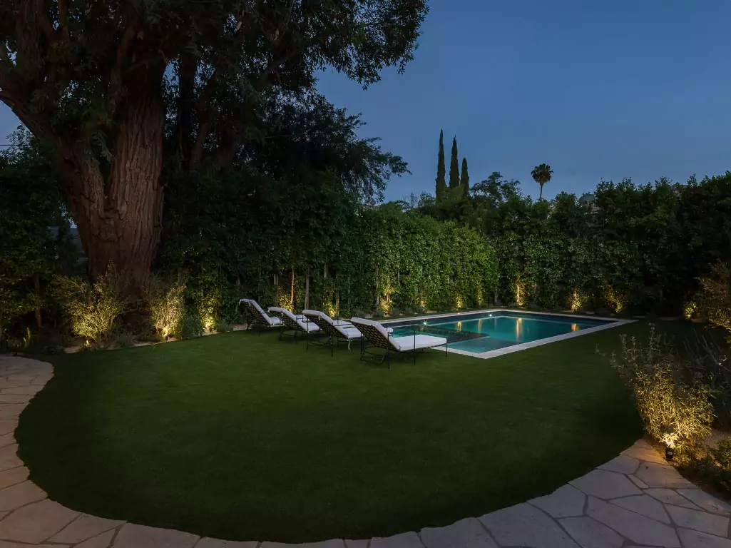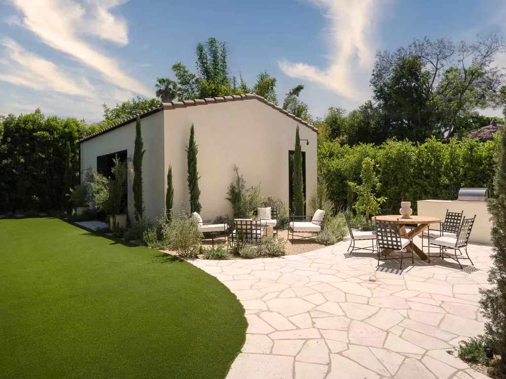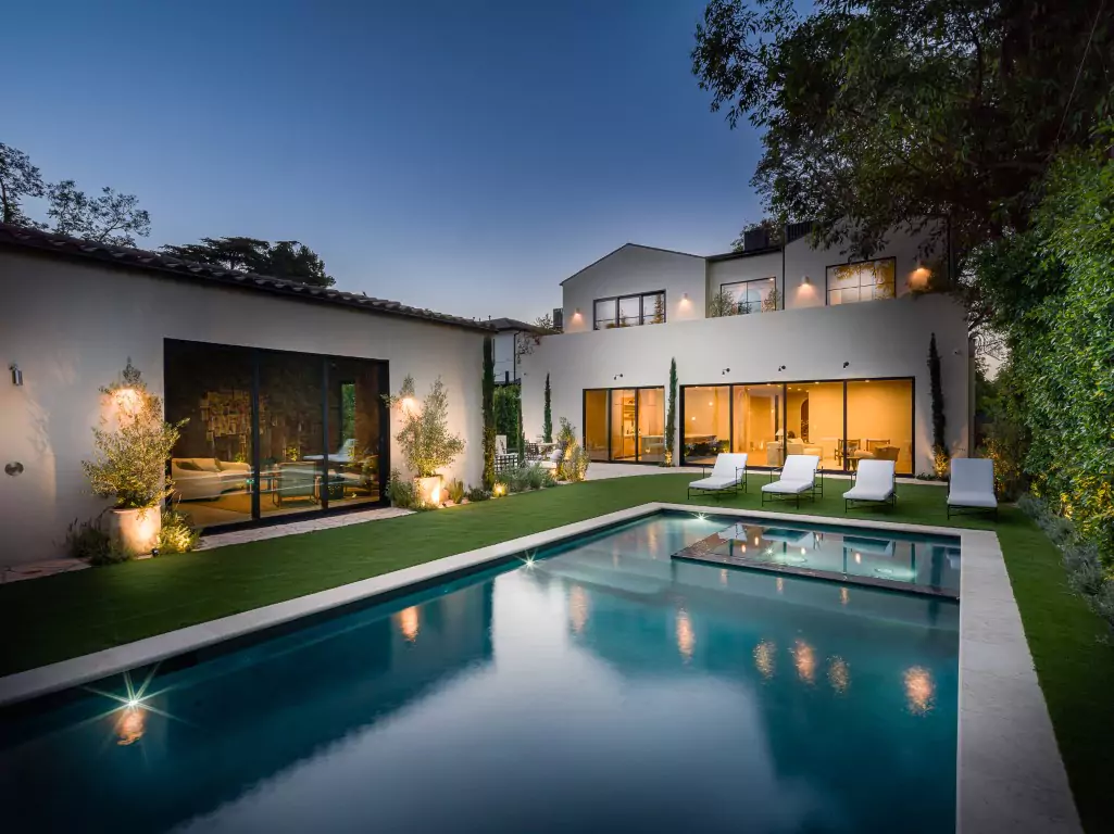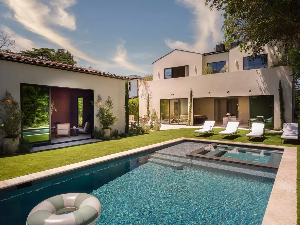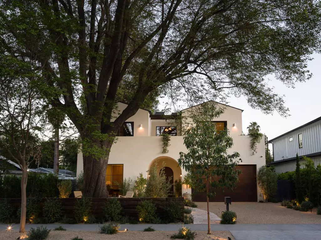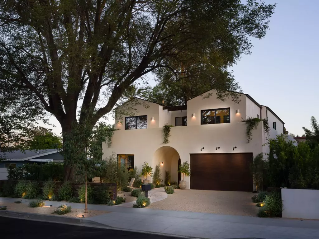 Welcome to Villa La Maida, an enchanting modern Tuscan home in the heart of Valley Village. This new construction by SLS Properties boasts 5,400 sq. ft. of sophisticated living and exceptional artistry. Step through the grand entrance to find lime plaster walls, natural stone accents, arched doorways and windows, and high ceilings. This home immediately creates an ambiance of refined serenity. This expansive haven features 5 luxurious bedrooms, 6.5 half baths, a movie theater, and a stunningly designed detached ADU. The heart of Villa La Maida is its whimsical chef’s kitchen, adorned with custom wood cabinetry, a sprawling porcelain top island, and Wolf appliances. Sliding glass doors open to a sun-kissed flagstone patio, perfect for al fresco dining amidst lush greenery. The primary bedroom features vaulted ceilings, fluted accent walls, and a beautifully curved fireplace, exuding timeless sophistication. The primary bathroom showcases a unique dual-sided round vanity, complemented by a floating mirror and an elegant standalone tub, making this bathroom a true masterpiece of design. Outside, the grounds are a verdant wonderland with manicured lawns, mature trees, and absolute privacy. This serene oasis includes a pool, spa, out door shower and delightful barbecue area, perfect for year-round gatherings. Located within the highly coveted Colfax Charter School District and minutes from Valley Village Park, Villa La Maida is more than a home; it’s a magical escape into elegance and tranquility.